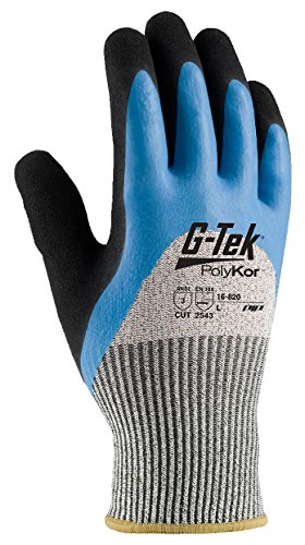 G-Tek CR 16-820/M Seamless Knit HPPE/Glass Glove with Acrylic Lining and Double-Dipped Latex Coated Micro-Surface Grip on Palm, Fingers and Knuckles