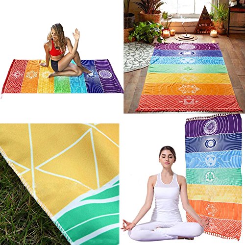 Neasyth Single Yoga Towels Rainbow Tapestry 100%Cotton Square Colors Blanket For Bath towel yoga mat Wall Hanging Home Decor Shawl Beach Towel Hanging Bed Bedding 59in
