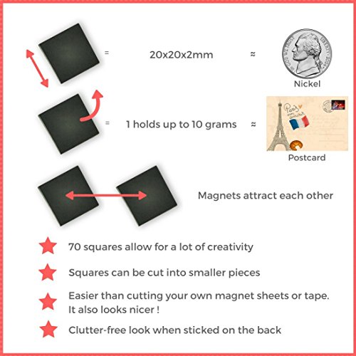 ENDLESS POSSIBILITIES: Magnets can be used for sticking practical information or good memories on the fridge, magnets are behind paper instead of on top: a clean and clutterless look. Squares can be used for DIY art projects, they can be used for vision boards, to make your own fridge magnets, to hold up little iron objects etc..