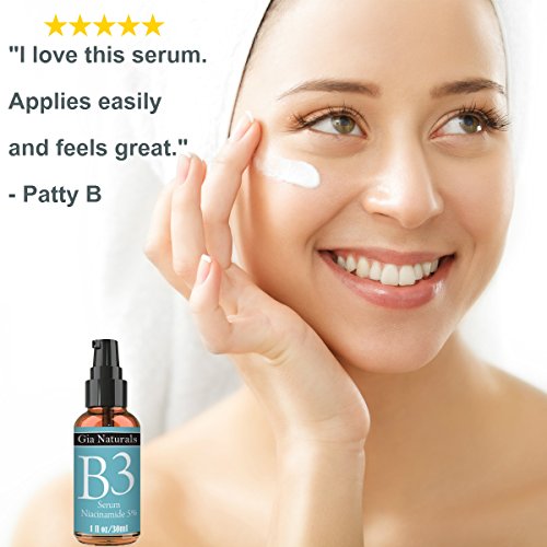 -. Binding : Health and Beauty -. Brand : Gia Naturals -. EAN : 0684758997418 -. Feature : PURE, ORGANIC and NATURAL INGREDIENTS. Sulfate and paraben free. Gia Naturals takes pride in providing products that are SAFE and HIGHLY EFFECTIVE. Made in the USA in a FDA registered facility. Cruelty free. Natural, pure and organic ingredients. / YOUR SKIN WILL APPEAR YOUNGER, PLUMPER AND SMOOTHER. Hydrating your skin will help your skin to stay younger over time. Our Vitamin B3 Serum gives your skin a power boost of hydration. A well known TV Dr. touted these benifits as he discussed VItamin B3 on his show. / ACNE FIGHTER, B3 BOOSTS COLLAGEN, Gia Naturals Vitamin B3 Serum will help eradicate premature aging and the effects of sun damage. This product is known to boost collagen, which will help reduce lines and wrinkles. An added benefit is the evening-out of skin tone and reducing dark spots caused by aging or sun damage. / STRENGTHENS SKIN'S IMMUNE DEFENSE SYSTEM. Vitamin B3 niacinamide has anti-inflammatory properties that will help fight acne. This product also tightens and tones skin. Creates smaller pores. / 100% SATISFACTION GUARANTEED and on sale today! -. IsAdultProduct : 0 -. Label : Gia Naturals -. Manufacturer : Gia Naturals -. MPN : 114-100D -. PackageQuantity : 1 -. PartNumber : 114-100D -. ProductGroup : Health and Beauty -. ProductTypeName : HEALTH_PERSONAL_CARE -. Publisher : Gia Naturals -. Size : 1 oz. -. Studio : Gia Naturals -. Title : Pure, Organic and Natural Vitamin B3 Serum Cream Niacinamide 5%. Anti-aging, Repairs Skin Damage, Reduces Wrinkles, Evens Complexion, Fights Acne, Smaller Pores, Boosts Collagen, Professional Grade, Made in the USA, Cruelty Free -. UPC : 684758997418