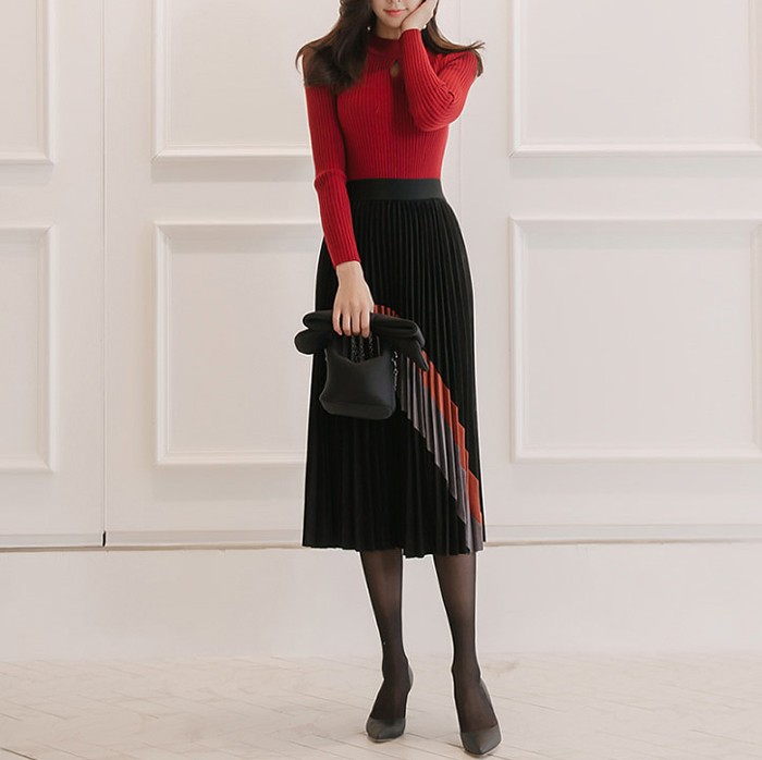 商品名:スカート 膝丈 プリーツ きれいめ
