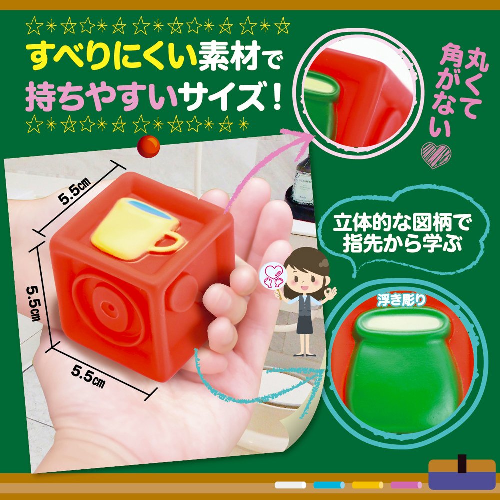 【おもちゃとの遊びのなかで楽しく学べる。保育園でも採用された知育玩具】赤ちゃんは大きさや形、手触りなどを全身で確かめながら様々なことを学んでいきます。積み木(つみき)を積み上げたりしながら遊ぶことで、指先のトレーニングだけではなく空間認識能力も育まれます。月齢が高くなってきたら、積み木(つみき)の色や描かれているイラストや数字を覚えたりグループ分けをしたりと今までとは違う遊び方を考えることで、考える力や行動力や創造性など新しい学びの力を育むきっかけになります。付属の収納ネットに入れるだけだからお片付けもラクラク。毎日繰り返すことでおもちゃで遊んだ後のお片付けの習慣が身に付きます。