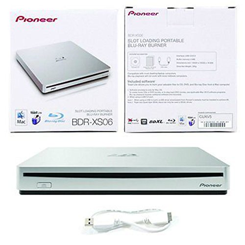 Pioneer BDR-XS06 Slim Portable Blu-Ray Writer USB 3.0 BD/DVD/CD 6x External Slot Burner (Silver) for MAC + Bonus Microfiber Disc Cleaner Cloth