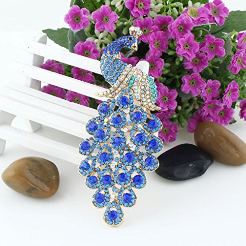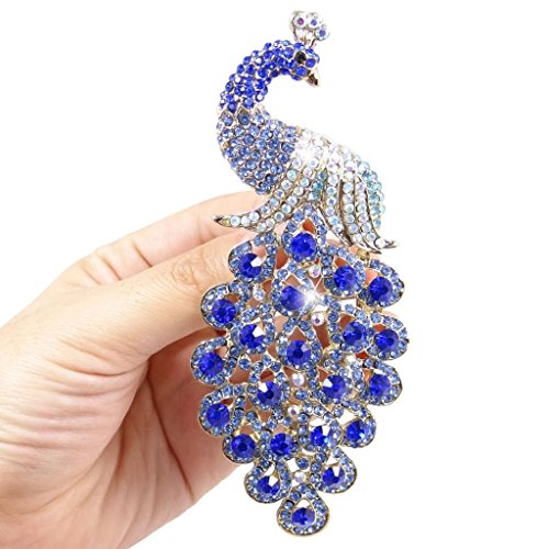 - Title : EVER FAITH 5 Inch Peacock Austrian Crystal Brooch Pendant Gold-Tone Blue D00293-3