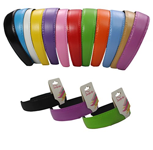 12 Piece Set of Faux Leather Headbands. These headbands are excellent quality, Sewn All Around to Prevent Fraying and Coming Apart. Soft ends ensure that it is comfortable wear and does not irritate the ear or face. Vibrant Bright Colors. This pack includes : 2 Orange, 2 Green, 2 Hot Pink, 2 Red, 2 Turquoise, and 2 Yellow headbands.Feature