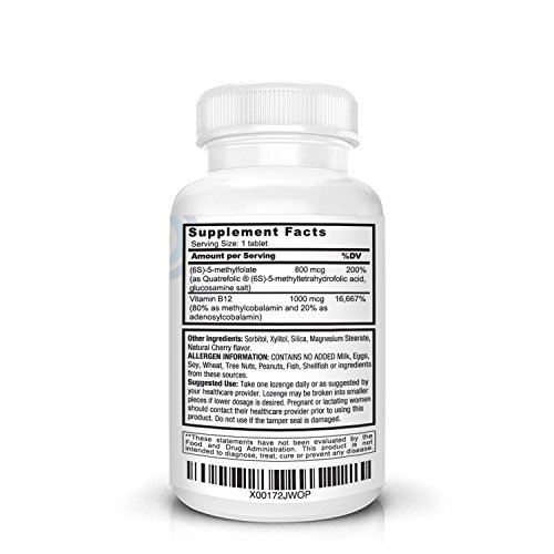 NATURAL EASY TO DELIVER DOSAGE WITH NO SYNTHETIC FLAVORINGS - Core Med Science natural cherry flavored lozenges break easily for split dosing and are soy and wheat-free, with no synthetic flavoring. Each Folate B12 Lozenge contains sorbitol and xylitol as well as Active B-12 with pure nonracemic Folate. Methyl B-12 helps maintain vitality and is an important folate supplement for hair skin and nails, as well as for women.of all ages.