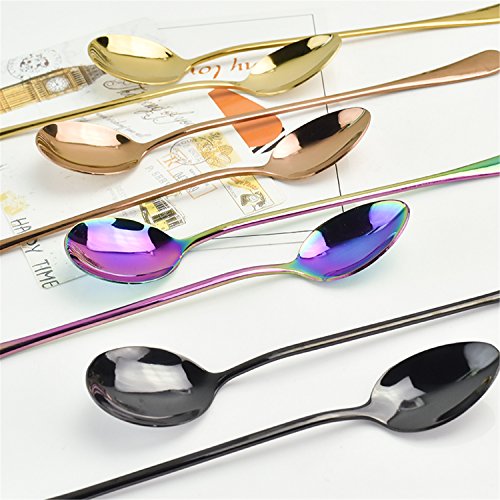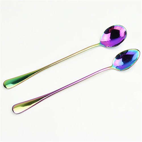 | (Jongood Camping-cooking-utensils)/Camping Hiking/Camping Cookware/DIRECT FROM USA/Jongood Nice 2Pcs Stainless Steel rainbow Long Handled coffee spoons mixing spoons set cold dri... |