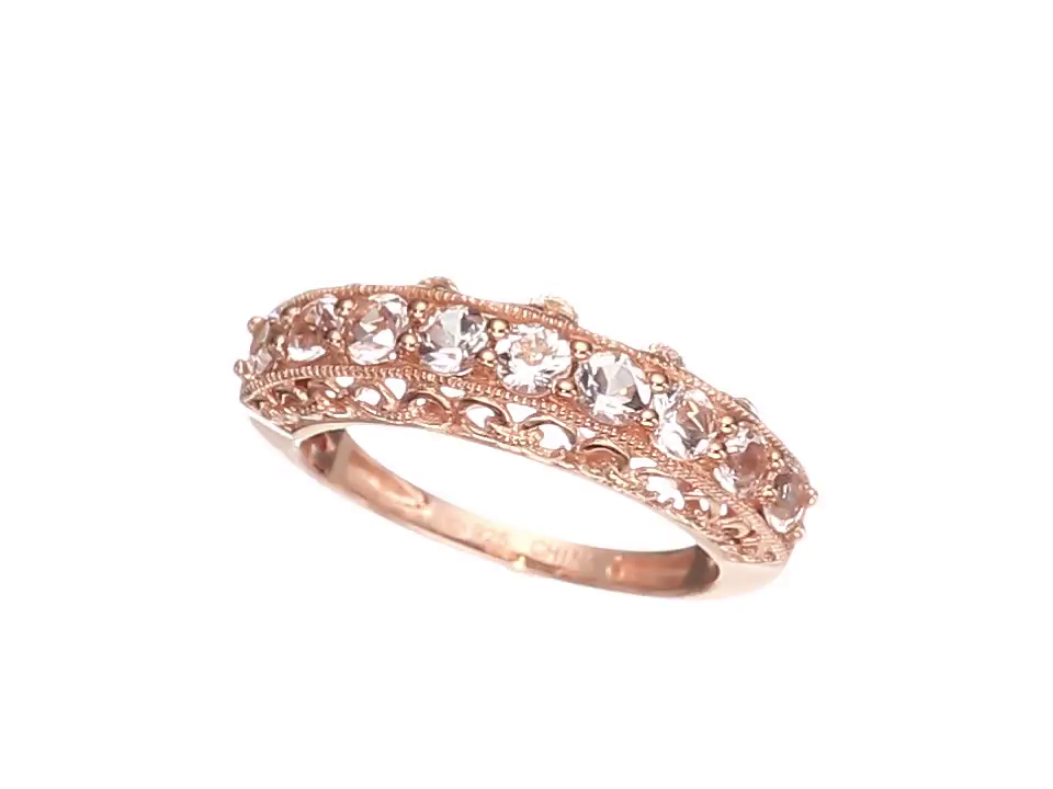 Rose Gold-Plated Silver Morganite Round 9-Stone Stackable Ring, Size 7
