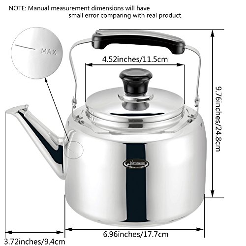 - Title : Whistling Tea Kettle, Large 2.6 Quarts (2.5 Liters) - Newness Food Grade Polished 304 Stainless Steel Tea Kettle with Whistling Lid - Stovetop Safe Tea Kettle, Gas and Electric Induction Compatible