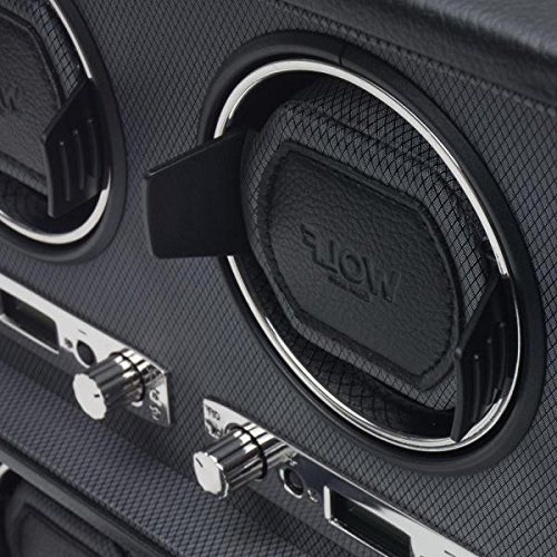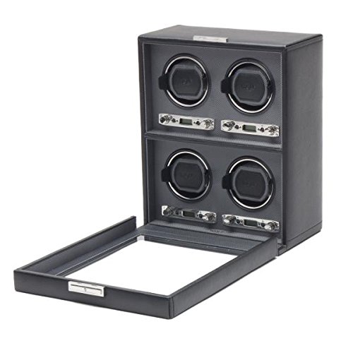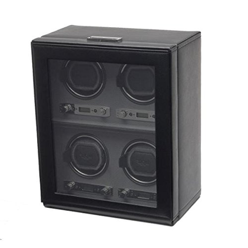 -. Title : Men's Watch Winder for 4 Timepieces in Faux Leather w/ Glass Door, Lock and Patented Winding Programs