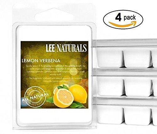Lee Naturals Spring & Summer - (4 Pack) LEMON VERBENA Premium All Natural 6-Piece Soy Wax Melts. Hand Poured Naturally Strong Scented Soy Wax Cubes