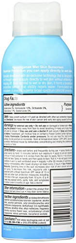 ReleaseDate : 2010-11-05 Studio : Johnson Johnson SLC Publisher : Johnson Johnson SLC Binding : Grocery Product Description Conditions at the pool, beach or in humid climates make skin wet and can make sunblock application difficult. Neutrogena Wet Skin Sunblock Spray with Helioplex is specially formulated to be applied to wet skin for sun protection. When applied to wet skin, ordinary sunblock can whiten and slide off. Neutrogena Wet Skin Sunblock Spray instantly cuts through water to form a protective barrier. This product features Helioplex, a breadth of stabilized sunscreen technologies that delivers superior protection from the sun. 0