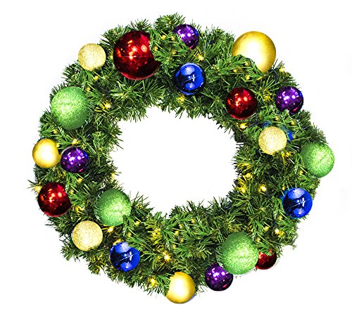 Queens of Christmas WL-GWSQ-02-ROYAL-LWW Pre-Lit LED Sequoia Christmas Wreath Decorated with The Royal Ornament Collection, 2', Warm White