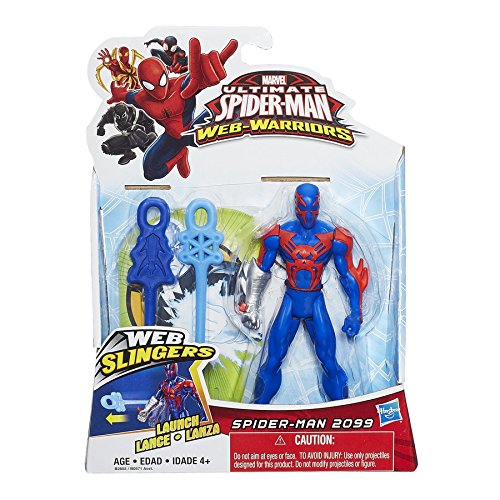 -. Binding : Toy -. Brand : Spider-Man -. EAN : 0630509301768 -. Feature : Spider-Man 2099 figure launches webs / Looks like the web-slinging superhero / Includes 2 webs and target to fire at / Target has villain on it / Includes figure, 2 webs and target -. IsAdultProduct : 0 -. Label : Hasbro -. LegalDisclaimer : Do not aim at eyes or face. TO AVOID INJURY: Use only projectiles designed for this product. Do not modify projectiles or figure. -. Manufacturer : Hasbro -. Model : B2603AS0 -. MPN : B2603AS0 -. PackageQuantity : 1 -. PartNumber : B2603AS0 -. ProductGroup : Toy -. ProductTypeName : TOYS_AND_GAMES -. Publisher : Hasbro -. Studio : Hasbro -. Title : Marvel Ultimate Spider-Man Web Warriors Web Slingers Spider-Man 2099 Figure -. UPC : 630509301768 -. Warranty : No Warranty