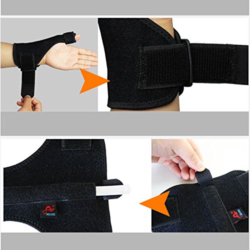 - Ergonomic Design: Both thumb and wrist are using velcro, which is easy to wear and take off. Adjustable wrap suitable for different hand sizes both men and women. Besides, the ergonomic design makes it close to body, distribution of gravity scientifically, snug and cosy to wear it. Can be worn on the day time and would not affect daily activities