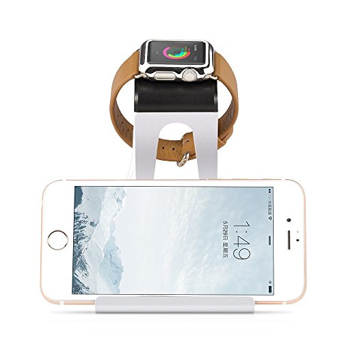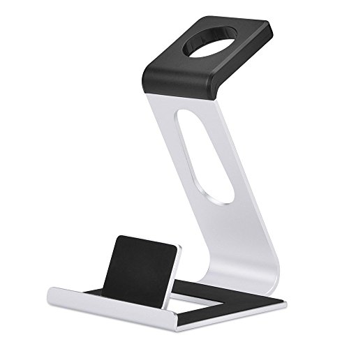 Apple Watch Stand, iPhone 6 Stand, [2 in 1] Apple Watch Charging Stand Aluminum Body with Charging Dock Desk Stand Holder for All Apple Watch Version & iPhone SE& Other Most Smartphones (Silver)