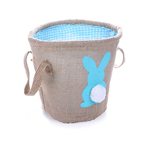 Easter Egg Basket for kids Bunny Burlap Bag to Carry Eggs Candy and Gifts (bunny blue)