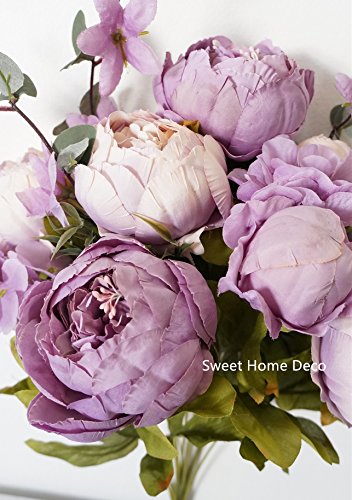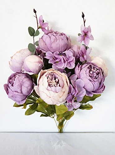 Sweet Home Deco 18’’ Super Soft Blooming Peonies and Hydrangeas Silk Artificial Bouquet (13 Stems/6 Flower Heads) (Lavender)