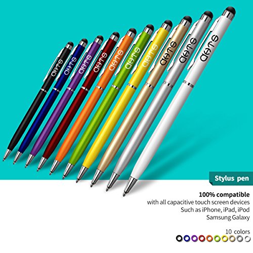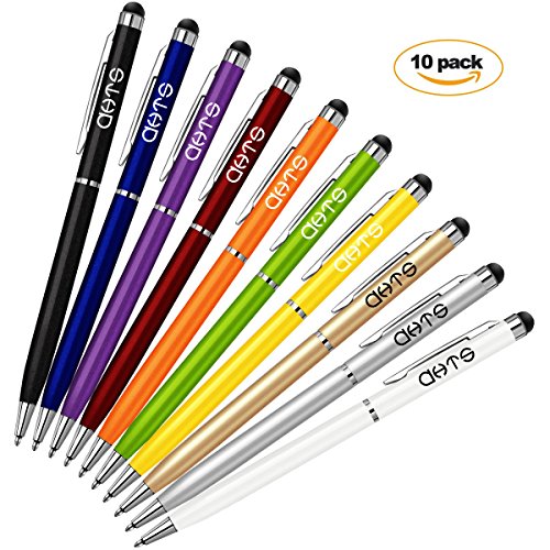 Stylus , DHTS 10 Pcs 2 in 1 Slim Capacitive Stylus Pen, Ballpoint Pen for Universal Touch Screens Devices, iPhone 6 Plus, iPad, Tablets, Samsung Galaxy, 10 Color.