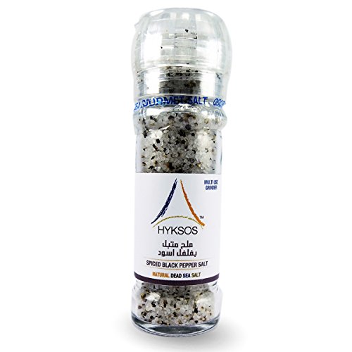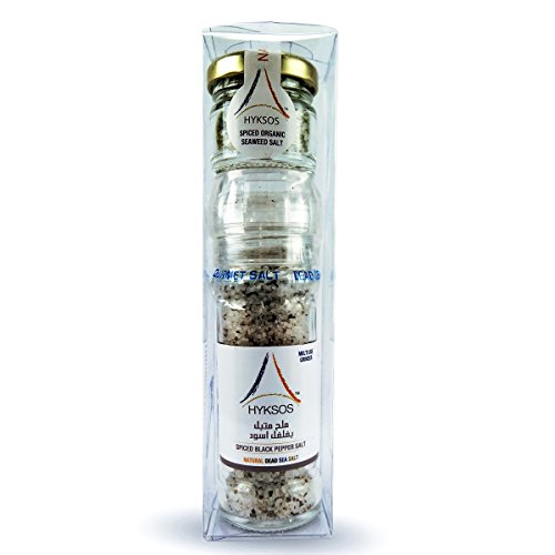 Hyksos Premium Set Flavored Dead Sea Salt – Spiced Black Pepper Salt Grinder & Spiced Organic Seaweed Salt Jar