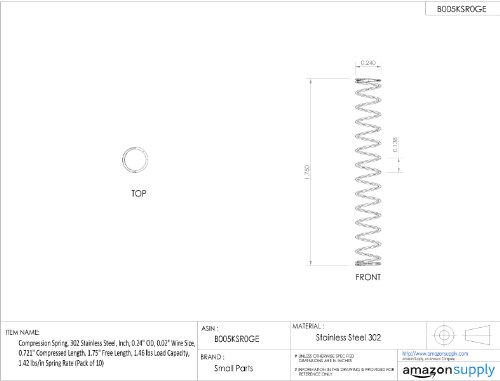 Compression Spring, 302 Stainless Steel, Inch, 0.24" OD, 0.02" Wire Size, 0.151" Compressed Length, 0.31" Free Length, 1.46 lbs Load Capacity, 9.16 lbs/in Spring Rate (Pack of 10)