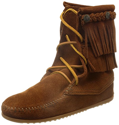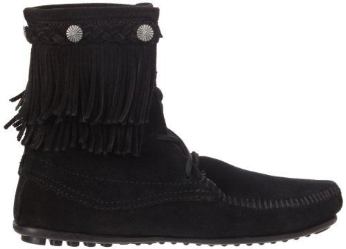 Fringe, fashion and function come together in this Tramper Boot. Soft, supple suede leather with metal conchos. Padded cushion insole. Sporty rubber sole. Height: 7 in.