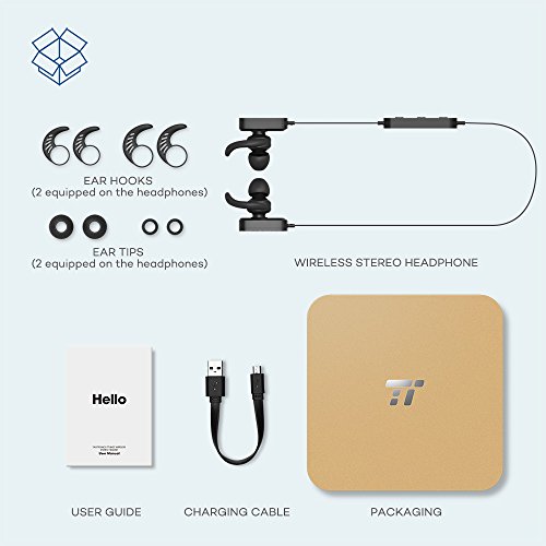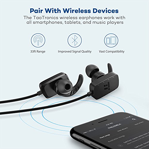 TaoTronics Bluetooth Headphones Wireless In Ear Earbuds Sports Earphones with Microphone (8 Hours Playtime, Bluetooth 4.1, Hands Free Calling, Maximum Compatibility)