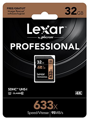 Lexar Professional 633x SDHC/SDXC UHS-I cards let you quickly capture and transfer high-quality photos and 1080p full-HD, 3D, and 4K video, with a read transfer speed up to 633x (95MB/s). The cards leverage UHS-I technology (UHS Speed Class 3 (U3) for 32GB-256GB capacities) for high-speed, Class 10 performance. And when using a USB 3.0 card reader, you'll power through post-production with high-speed card-to-computer file transfer. This dramatically accelerates workflow from start to finish, so you can save time and get back to the business of photography. Cards include downloadable Image Rescue software, and come with a limited lifetime warranty.Feature