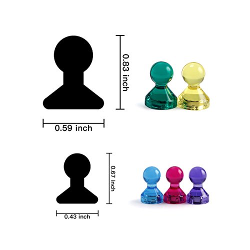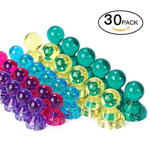 - ✔ PERFECT PACK - Pack of 30 magnets are Included. Dimensions of magnetic pins are D11*H17 mm and D15*H21 mm. The magnet set comes with 5 amazing colors.