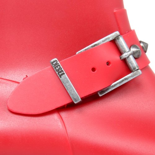 Product Description Perfect for a rainy day in the city, the Stud Me wellington boots from Diesel are in true red rubber with a strap detail on the foot and is studded at the top of the leg. 0