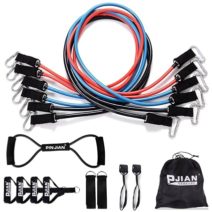 [Product Information]- HIGHEST QUALITY - The PINJIAN resistance band set is made of RUBBER LATEX.More resistant and safer than cheap PE bands on the market.