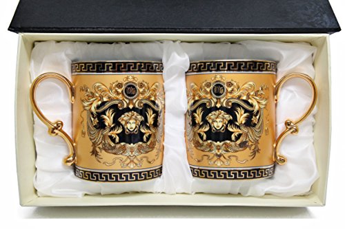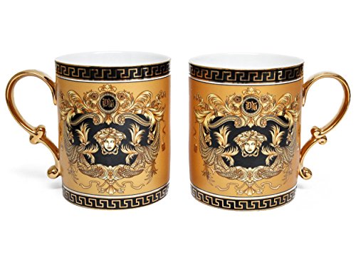 -. Feature : Set of 2 beautiful Mugs / Greek Pattern Medusa Series / 13 Oz capacity / High quality, 24K gold-plated ornament / Sold in beautiful gift box