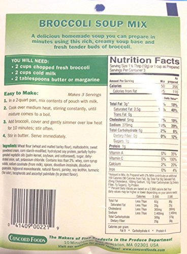 Concord Broccoli Soup Mix, 1.25-Ounce Pouches (Pack of 18 )