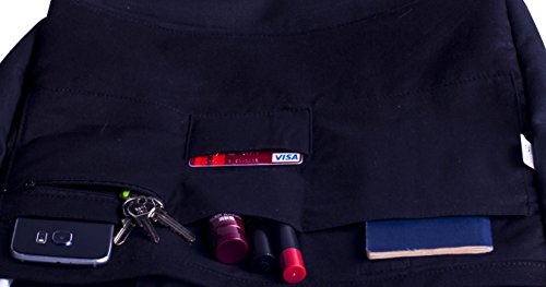 10 oz, 100% thick cotton. Large main compartment, 5 internal pockets including a zip pocket