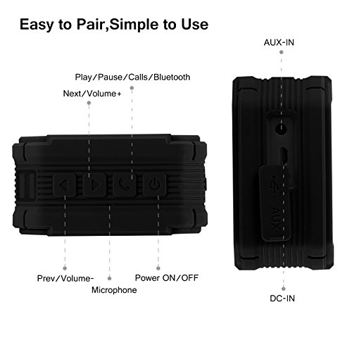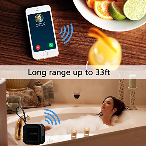 IPX5 waterproof rating and rugged case makes A106 a perfect Outdoor Speaker and Shower Speaker. It's splashproof & shockproof & dustproof & rainproof for indoor and outdoor use. Mini size, easy to carry. (NOT for full submersion)