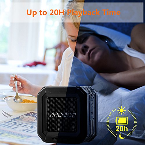 Archeer A106 Outdoor Portable Bluetooth Speakers with Microphone, Powerful 5W Driver with Enhanced Bass, 20 hour Playtime, for Shower/Sports - Black