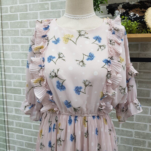 롱한 기장감으로 여신스러움과 잔잔한 플라워 패턴이 부담스럽지 않아 봄여름가을 단품으로 입어주면 너무너무 예쁘답니다.