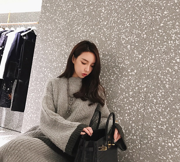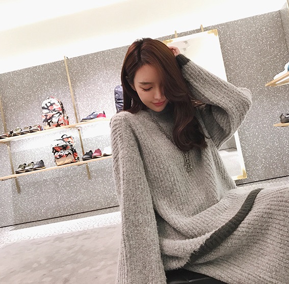 無地 ミディアム カジュアルスタイル スーパーロング袖 セットアイテム ゆったり