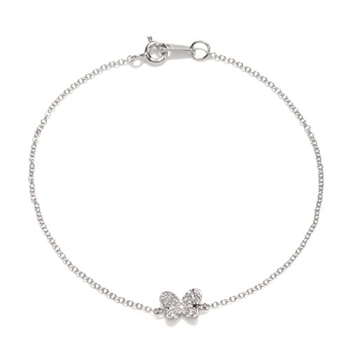 -. Title : Rhodium Plate Silver White CZ Mini Butterfly Anklet - 9.5"