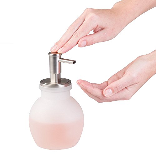 InterDesign Westport Rounded Glass Foaming Soap Dispenser Pump for Kitchen or Bathroom Sinks, Frost/Brushed