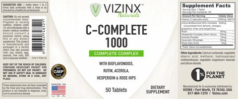 -. Title : VIZINX C-Complete 1000 MG - includes Quercetin, Rose Hips, Rutin, Acerola, Hesperidin with Citrus Bioflavonoids from Lemons, Oranges & Grapefruit, Protects Against Free Radical Damage, 50 Tablets