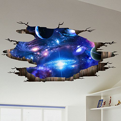 Provone Blue Purple Galaxy Wall Decals , Removable Sticker,The Art Magic 3D Milky Way Dreamscape Home Decor (A Blue Purple Galaxy)