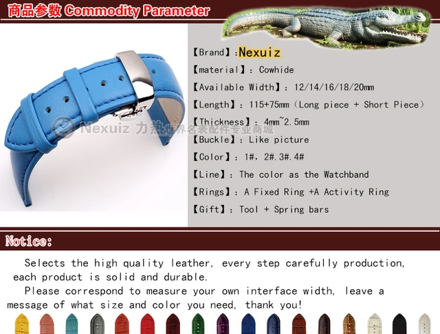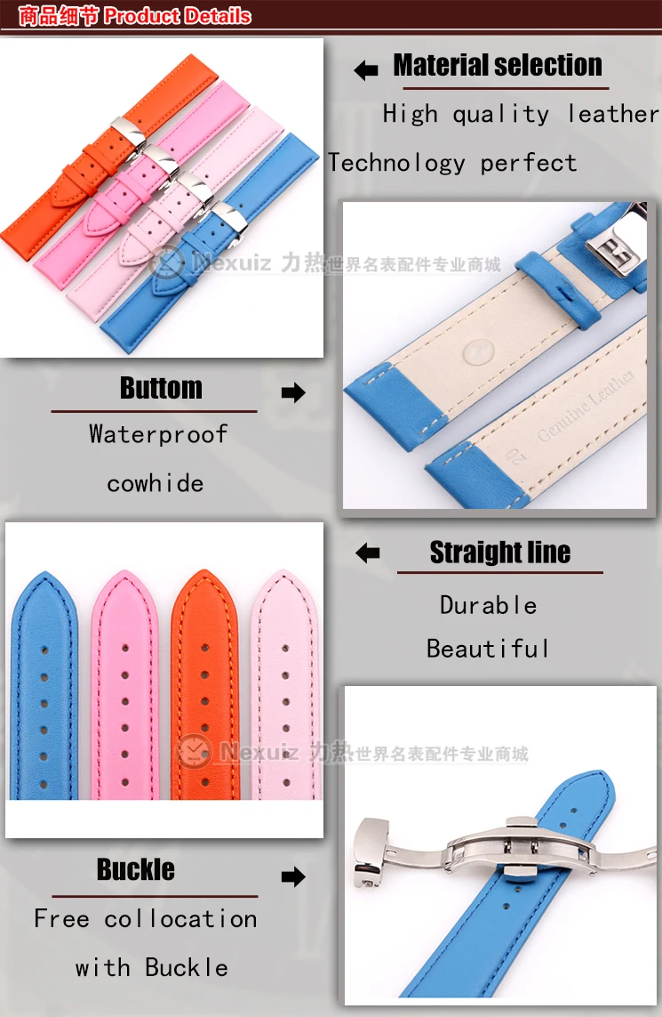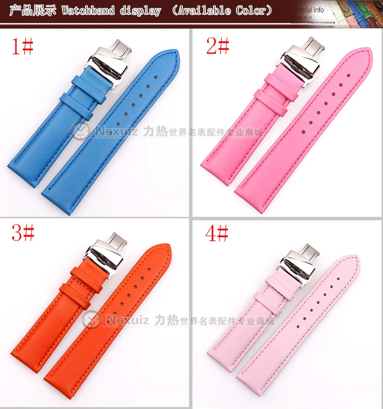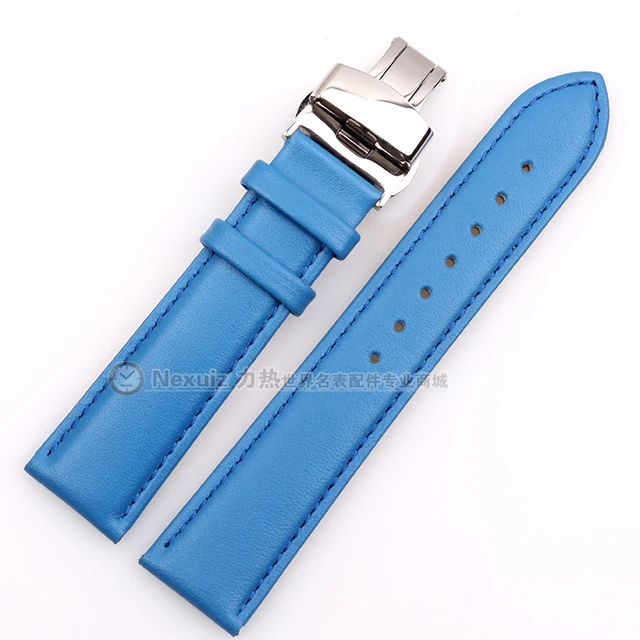 정품 가죽 소 가죽 시계 줄 부드러운 스트랩 12 14 16 18 20 미리메터 여성 시계 블루 세련된 실버 나비 버클
