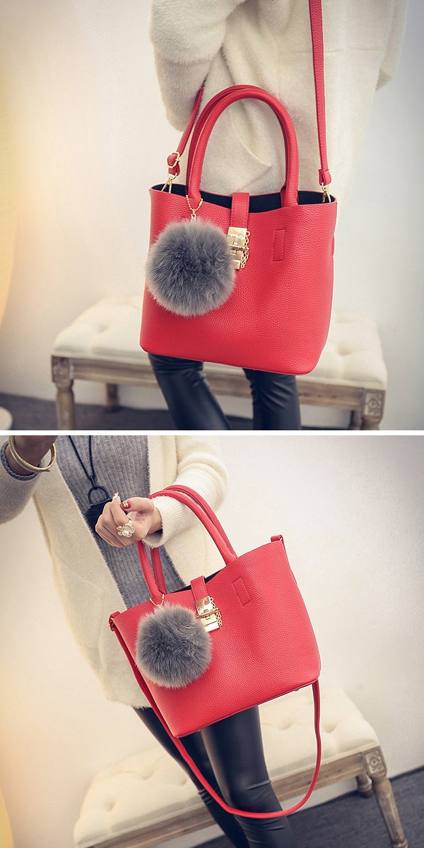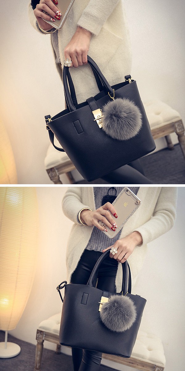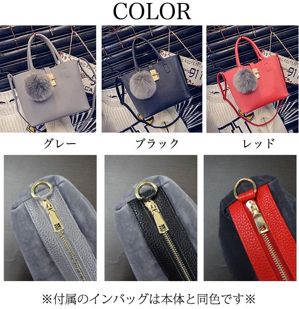 【スタッフコメント★】 ファーチャームが可愛いトートバッグ♪インバッグ付き!