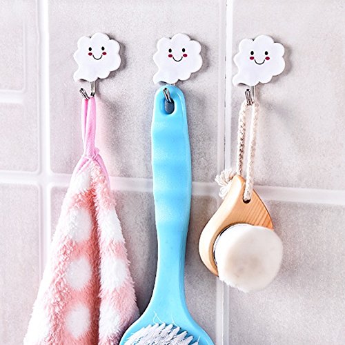-. Title : Mwfus Cute Cloud Shaped Sticker Hooks Stick Holder Hook Hanger White (Pack of 9)