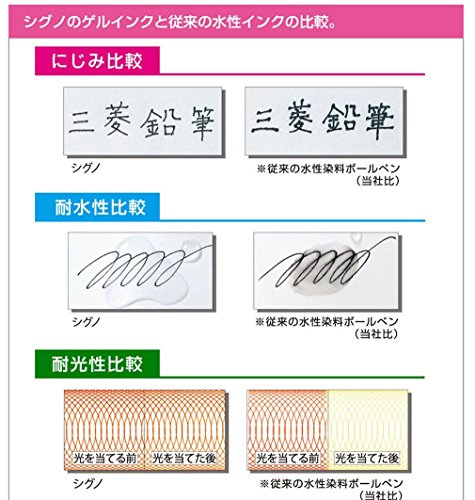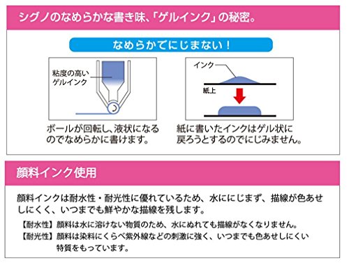 -. Feature : 5 Color Set (Black,Red,Pink,Light Blue,Orange) / Smooth wring and hard to ooze. / High viscosity gel ink becomes liquid by revolving of the tip ball. / Ink written once on paper attemps to resume to gel. / Pigment ink is superior in water resistance, light resistance.