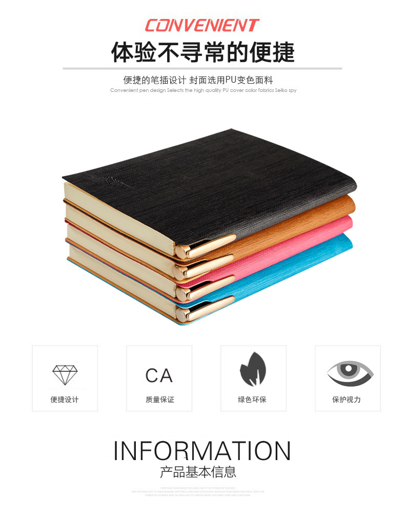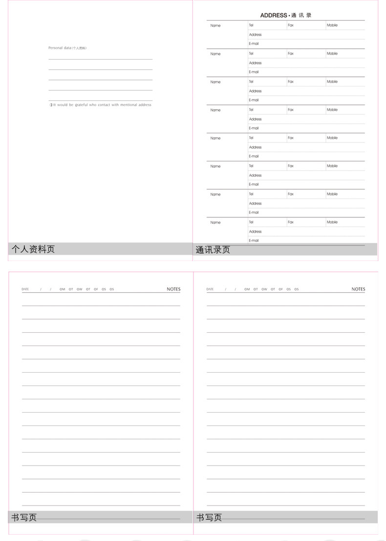 缺口插笔记事本 36K时尚多色横格纹办公文具本子