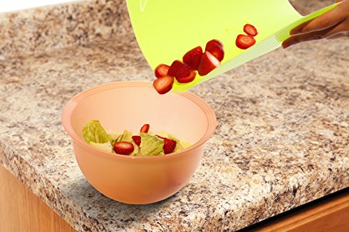 Neoflam Flexible Cutting Mats are a popular cutting board alternative for those with limited kitchen space. Flexible, lightweight and durable, they help protect kitchen counter tops; non-slip grid backing ensures the mats will not slip when you are prepping your food. The colors and icons help protect against food cross contamination. Flexible cutting mats can be rolled to funnel food to waiting pots and pans and folded for easy storage. Top rack dishwasher safe.