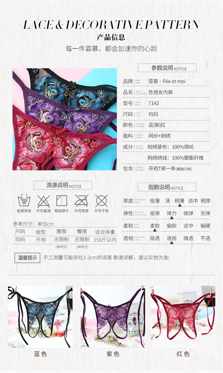 霏慕大码性感情趣内衣绑带开裆内裤透视三角裤成人丁字裤sm女7142