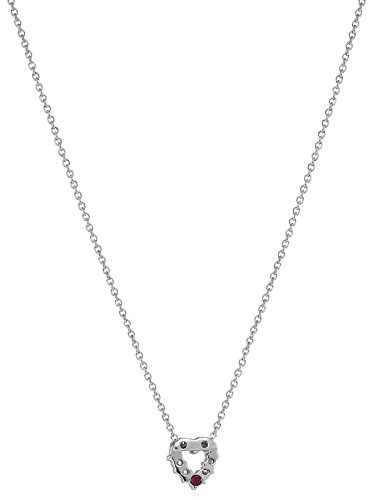 -. Feature : Pendant necklace in 18k white gold with open heart traced in pave-set round diamonds and hidden synthetic ruby in back / Cable chain with lobster-claw clasp / Made in Italy